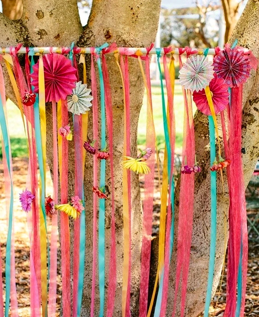 Декор дерева ленточками