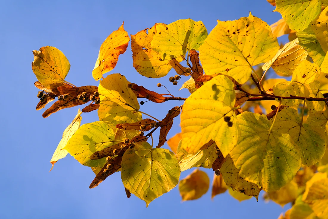 Липа крупнолистная осенью