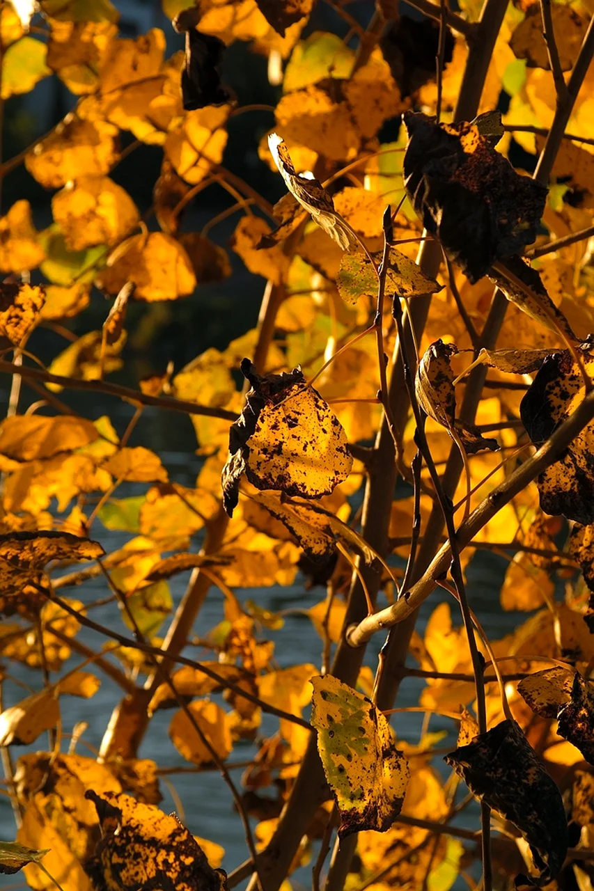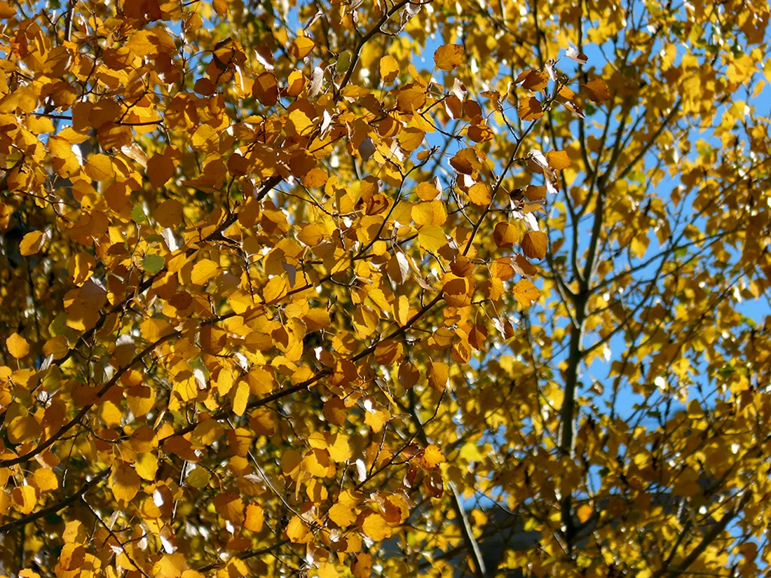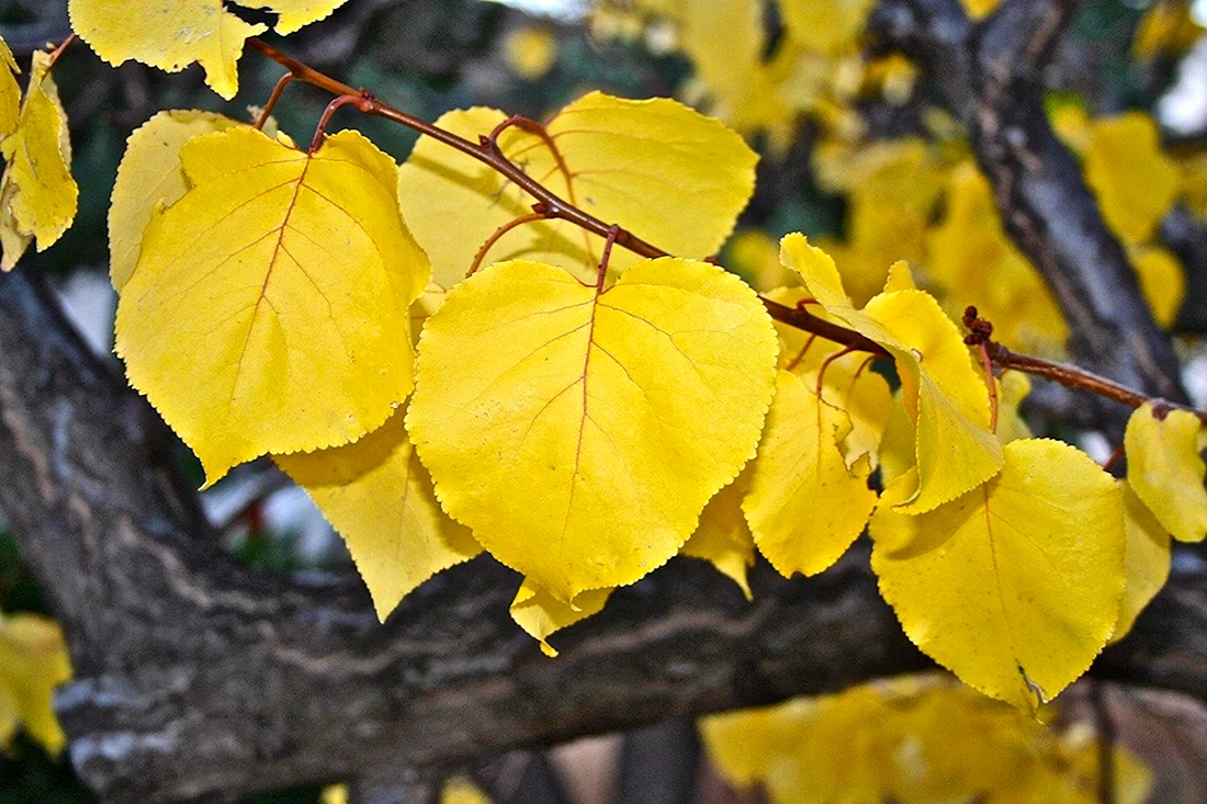 Тополь дельтовидный листья осенью