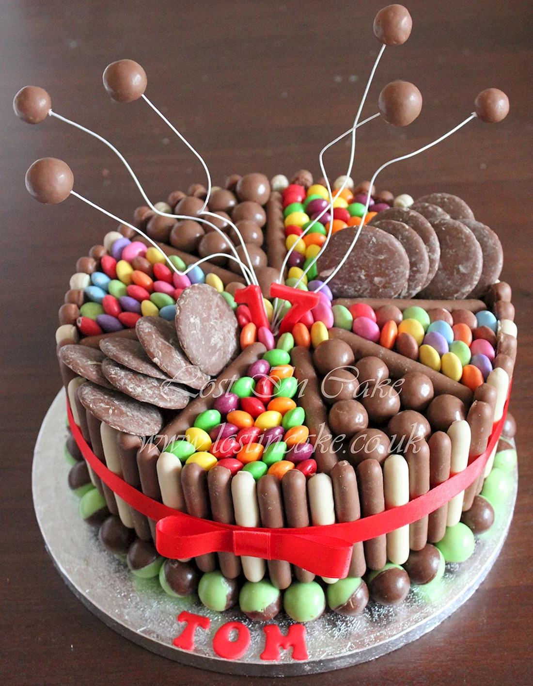Украшение торта конфетами