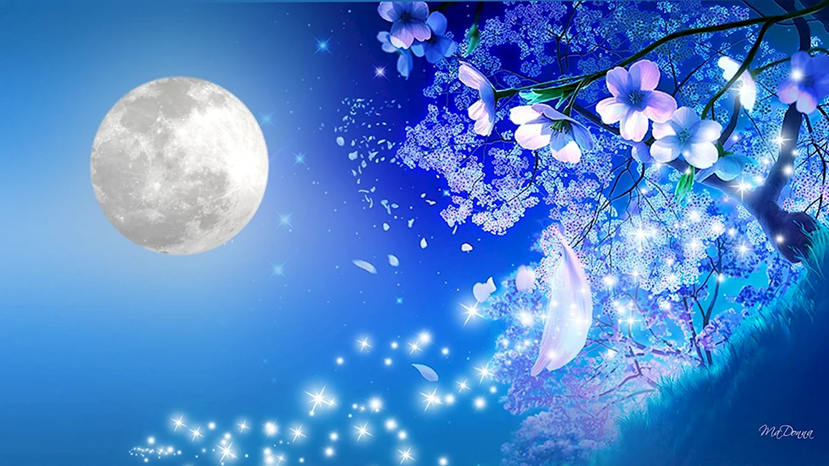 Луна на фоне цветов